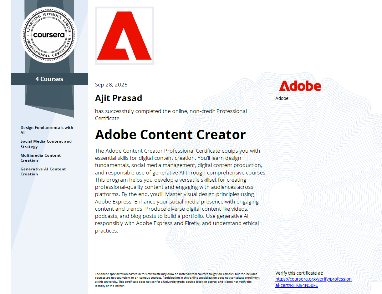 Worked as a Graphic Designer & video Editor at Adhyatmik Bhajan with
